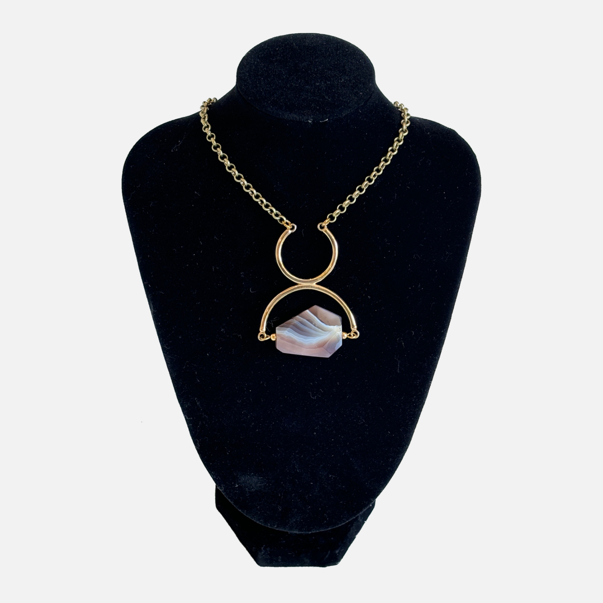 - Natural Bostwana Agate stone with gold fill geometric shapes