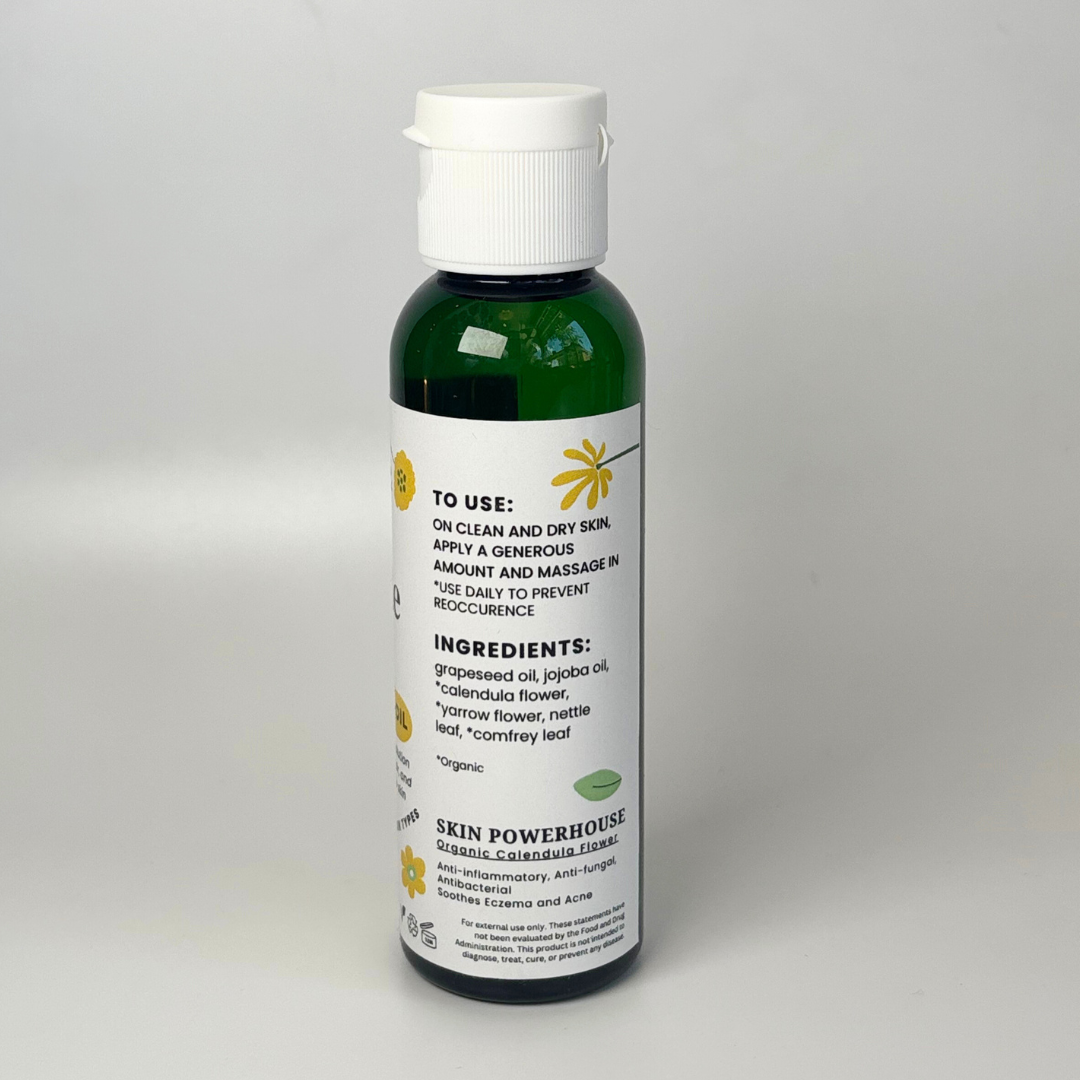 Ingredients: Grapeseed oil, Jojoba oil, Calendula flower, Yarrow flower, Nettle leaf, *Comfrey leaf