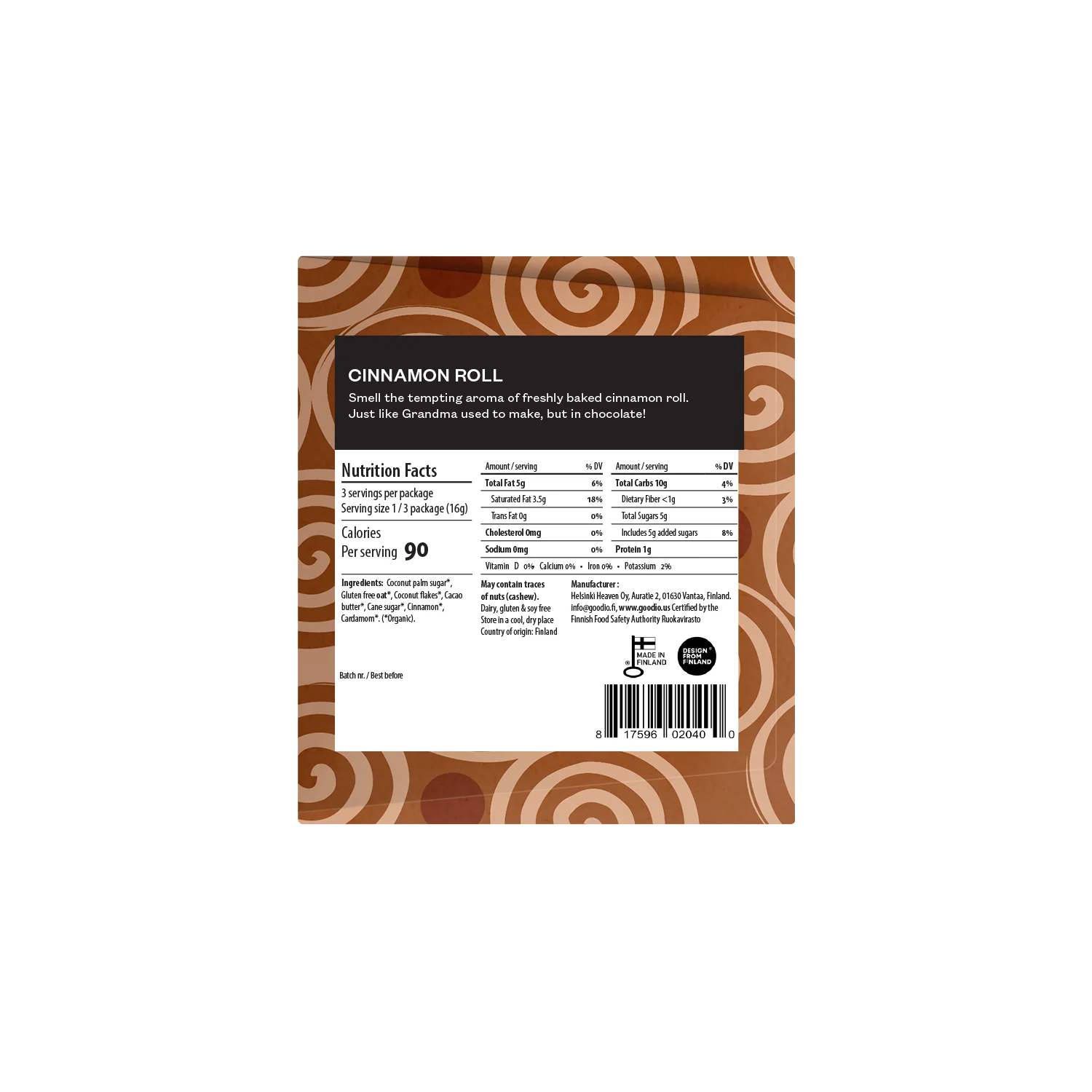 Smell the tempting aroma of freshly baked cinnamon roll. Just like Grandma used to make, but in chocolate! With every bite, you'll enjoy the benefits of high-quality, organic ingredients that will leave you feeling satisfied and nourished.