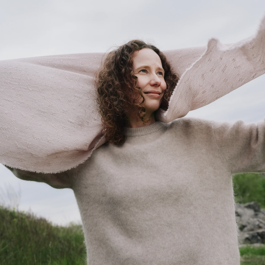 “Tula tuulan tuli tuli tei” goes part of an old Finnish folk song. TUULA is an airy wool scarf, light as a gust of wind. It envelops you in its gentle embrace like a mother with her cub. The scarf is decorated with a delicate, lace-like pattern.