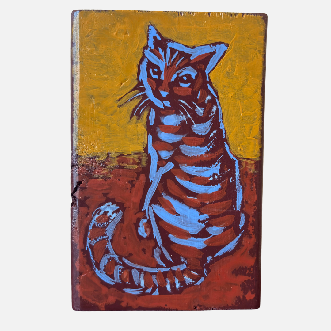 Milwaukee artist Mike Kasun painted "The Look", an original one of a kind acrylic painting on a block , which measures approximately 3 x 5"