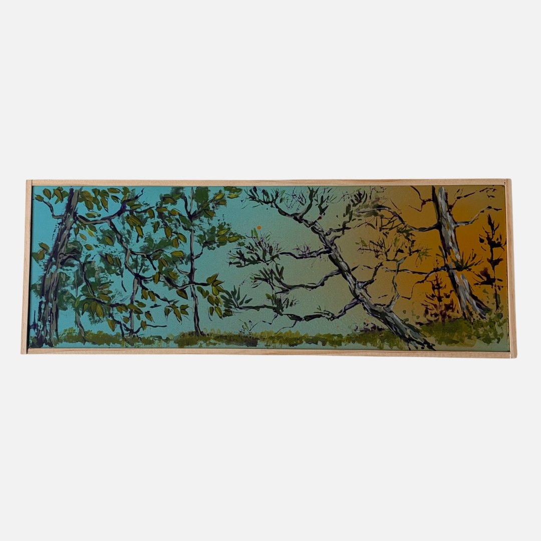 Milwaukee artist Mike Kasun painted "The Conversation", an original one of a kind acrylic & aerosol painting on a block with a handmade wood frame , which measures approximately 6.5" x 16"