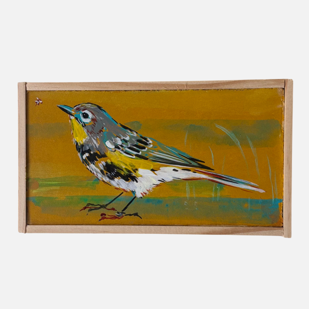 Milwaukee artist Mike Kasun painted "Lite Snack", an original one of a kind acrylic painting on a block with a handmade wood frame , which measures approximately 4" x 7"