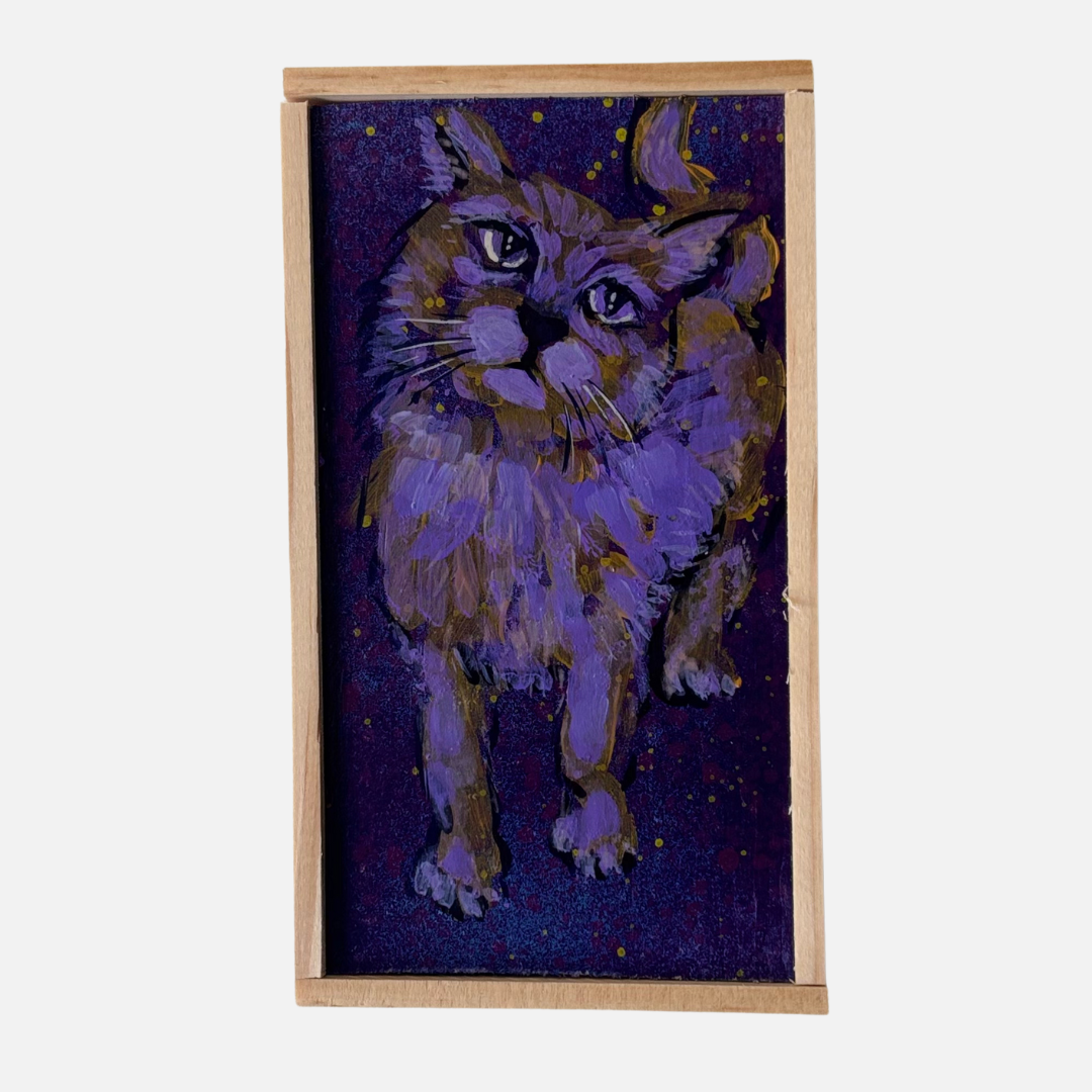 Milwaukee artist Mike Kasun painted "'Nipped ", an original one of a kind acrylic & aerosol painting on a block with a handmade wood frame , which measures approximately 4" x 7"