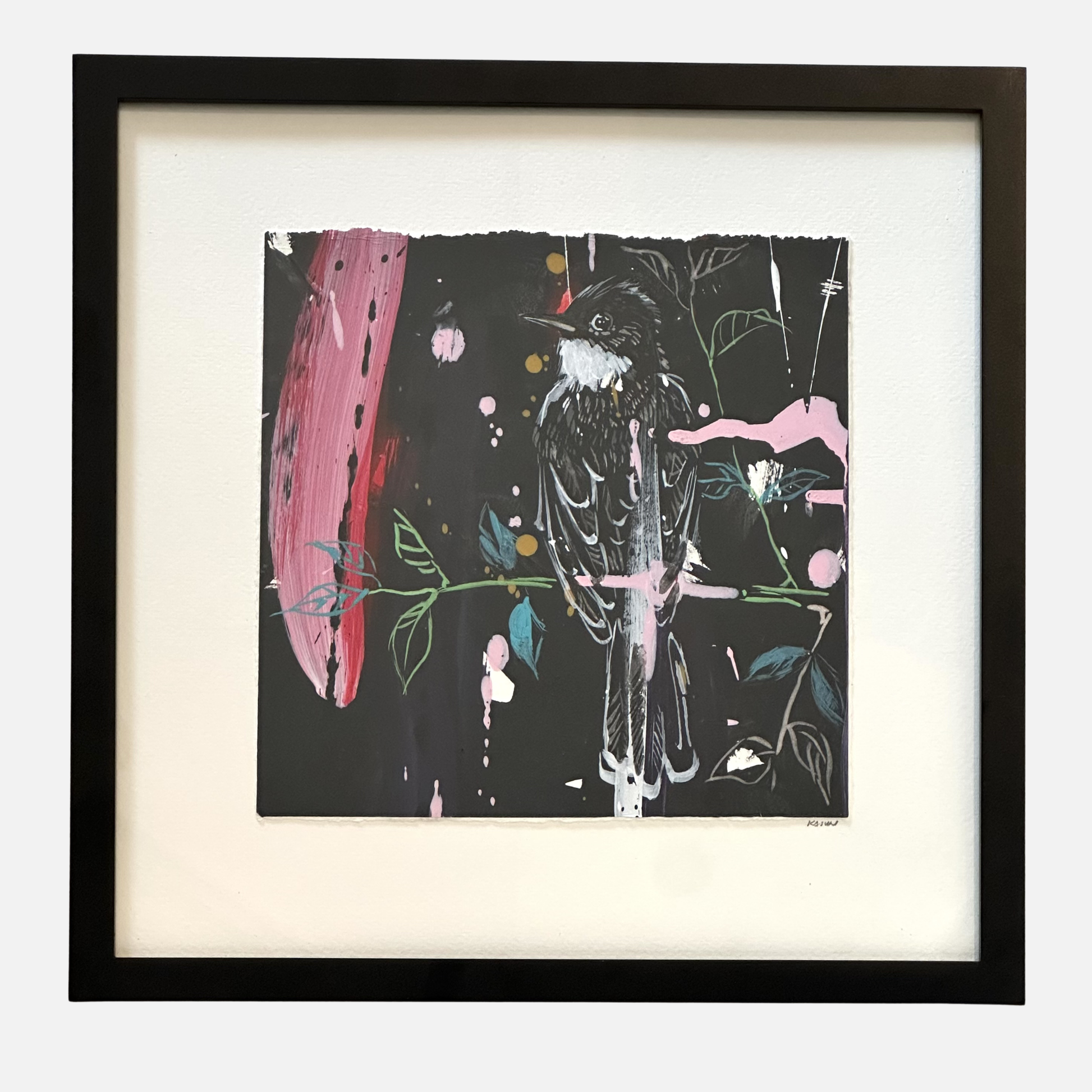 Milwaukee artist Mike Kasun painted "Kingbird", an original one of a kind acrylic painting in a black frame, which measures approximately 13" x 13".