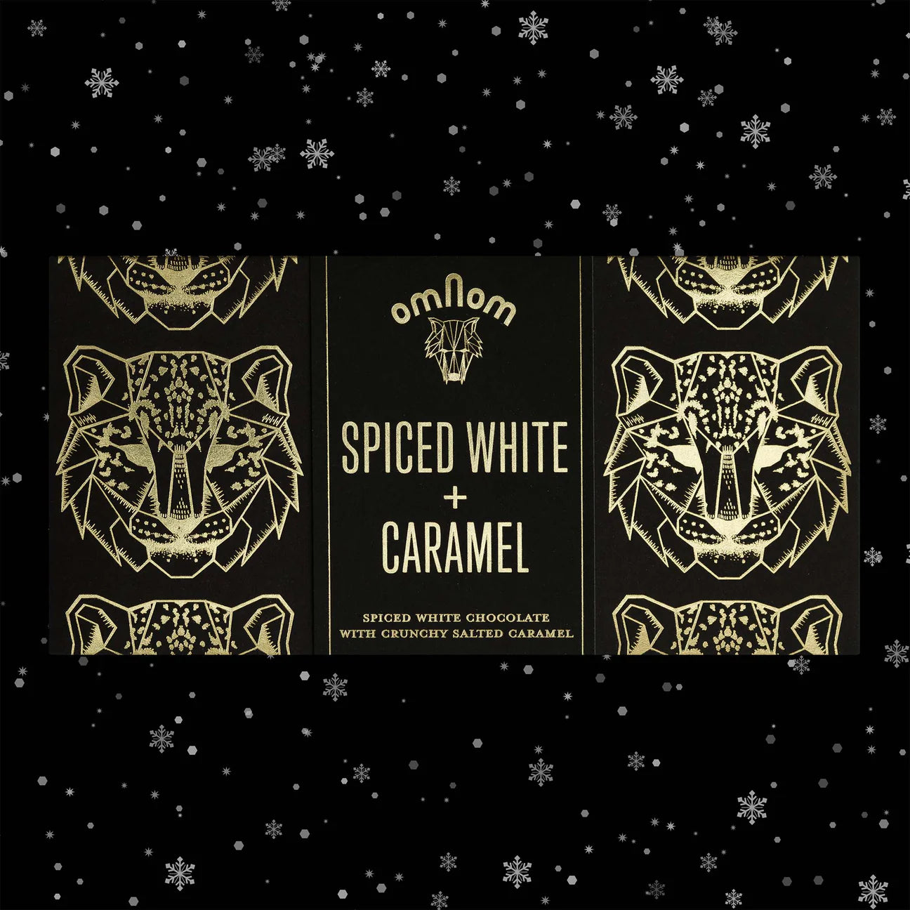 - Spiced White & Caramel - This chocolate's flavor is inspired by a classic Icelandic holiday drink called Malt & Appelsín, a malt and orange soda drink families enjoy during the holidays. With orange peel, cinnamon, and other delicious spices and crunchy caramel, Spiced White + Caramel is a holiday delight.