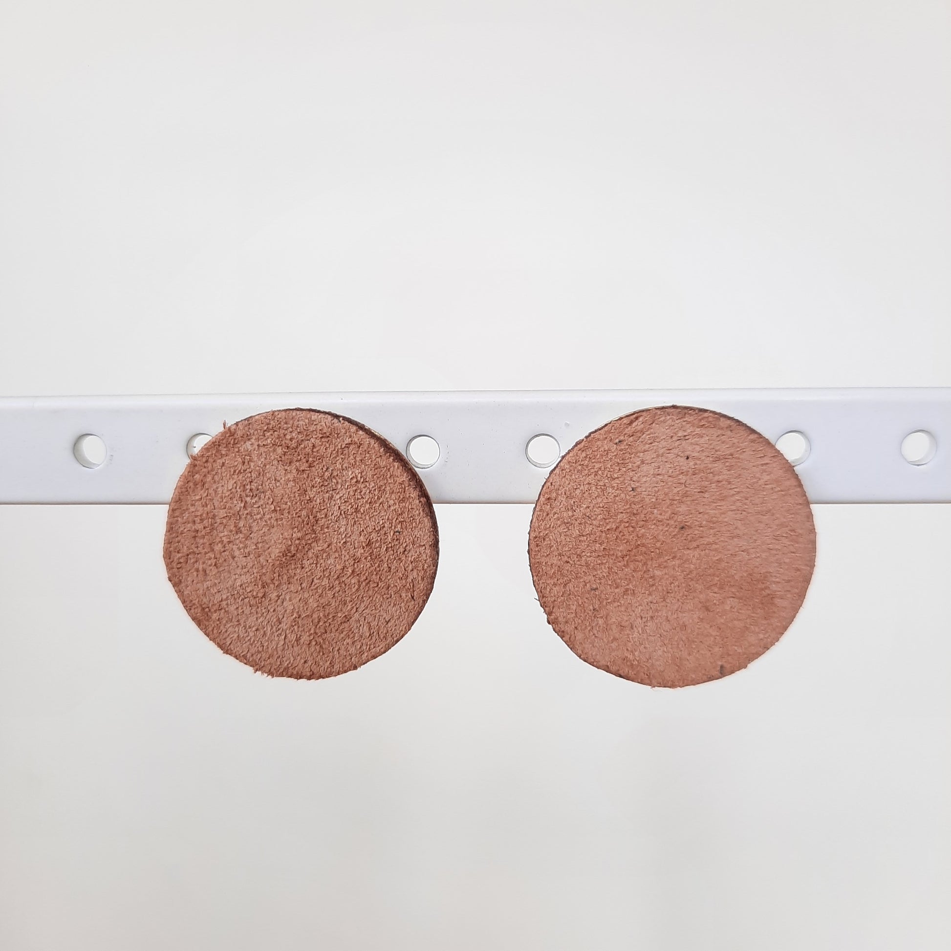 Permanent Baggage locally crafted large circle post earring with leather and brushed brass. The brass portion has an individually hand-brushed finish with matte sealant. They are laminated with a layer of our high quality genuine leather. Edges are finished and hand-molded resulting in natural, soft curves. Edgy, modern, and boho chic.