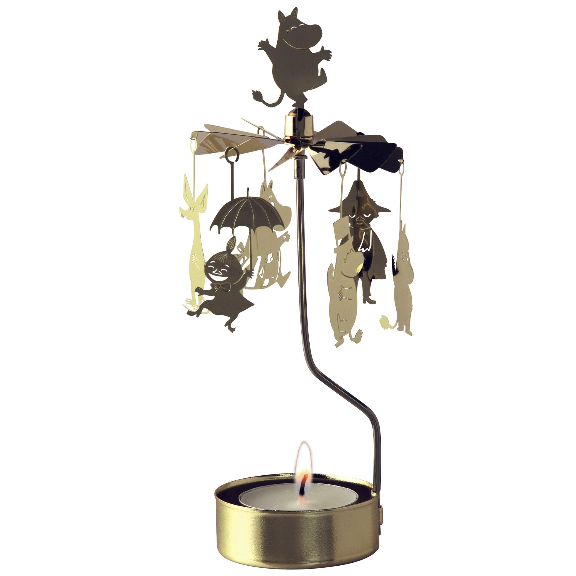The heat of the candle will make the whimsical ornaments and the carousel spin. Shaped reflections dance around the ceiling and walls. Includes one unscented tea light candle.