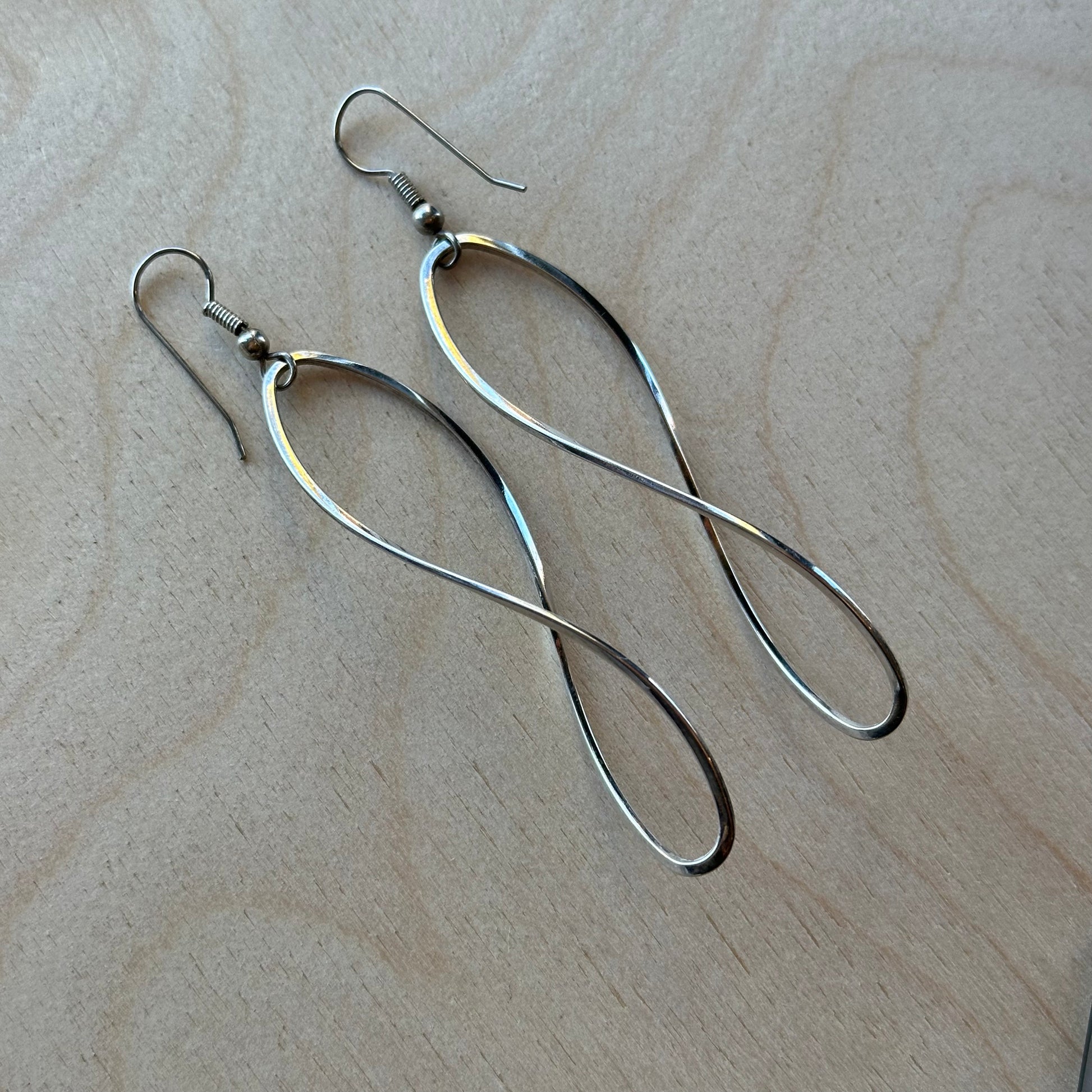 These sleek sterling silver infinity earrings are in excellent vintage condition. A beautiful and finely crafted set, lightweight enough to wear all day and night!