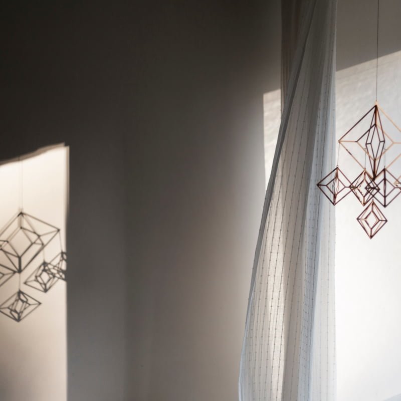 The small Himmeli Mobile brings a modern twist to a beautiful Nordic tradition. It respects the delicate design language and lightness of the traditional straw-made Himmeli crown, yet adds precision, timeless form and minuteness to it. Himmeli I is a mobile decoration that boasts a geometrically graphic design and minimalist essence. It is sturdy in its sculptural nature yet moves gently along with the slightest air flow. The small Himmeli I is especially pretty and calming above a baby’s cot or elsewhere in a child’s bedroom.