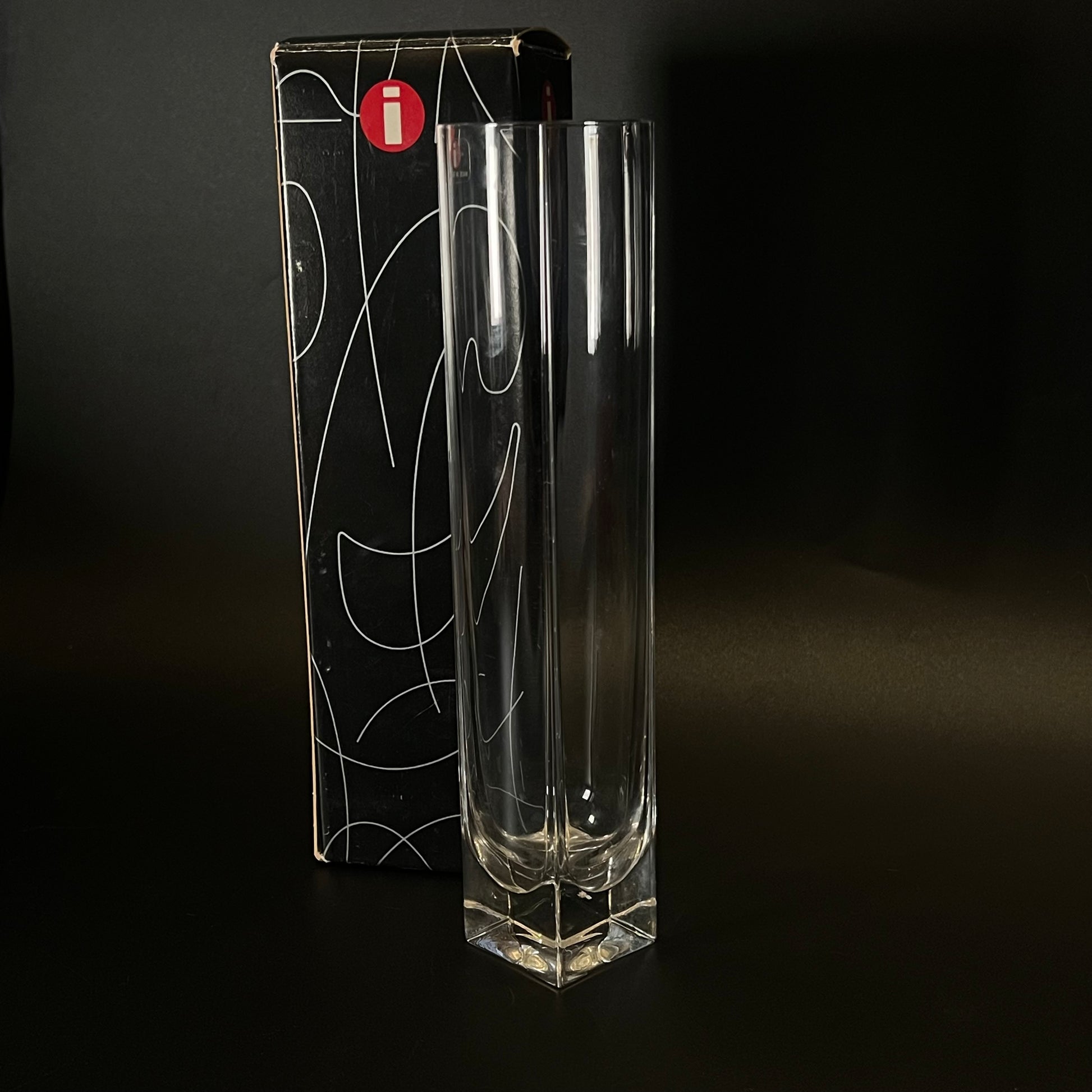 This beautiful vintage bud vase is from iconic Finnish glassware brand Iittala, and is the Geo design, by Ken Benson. The Iittala Geo collection was a focus on simple, geometric, and functional modern aesthetics. It dates to the 1990's