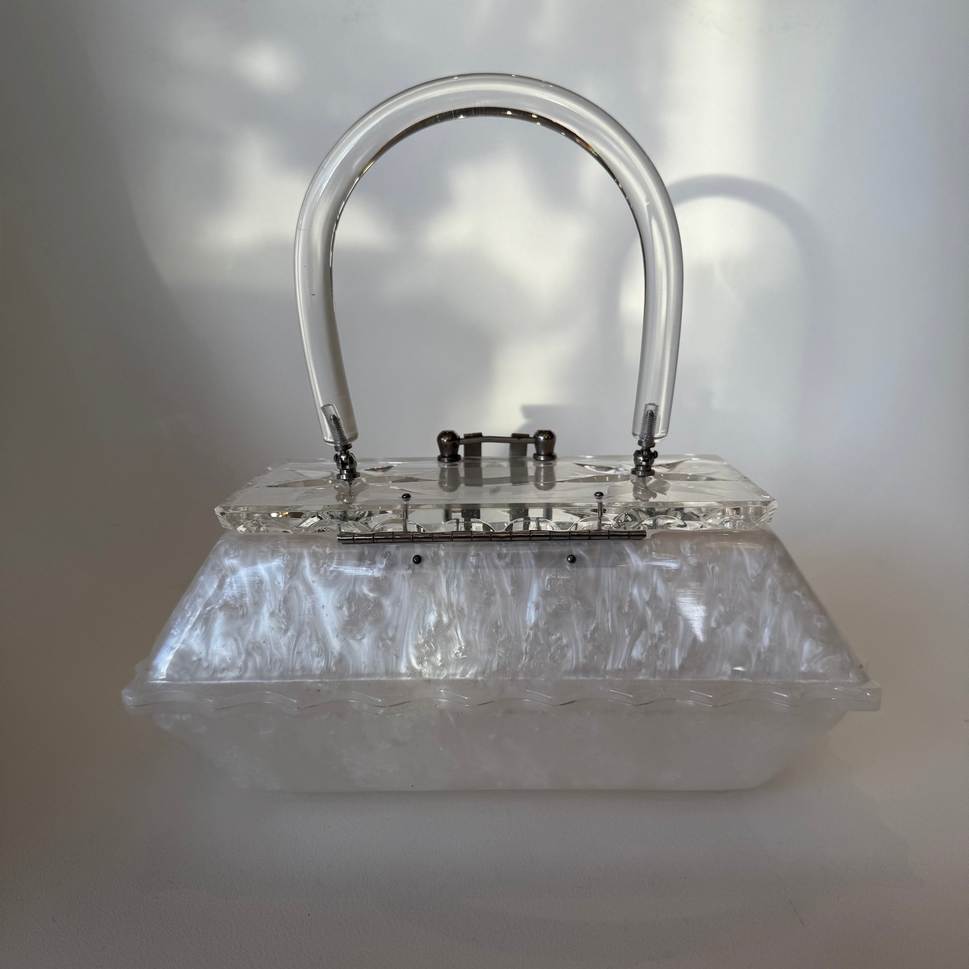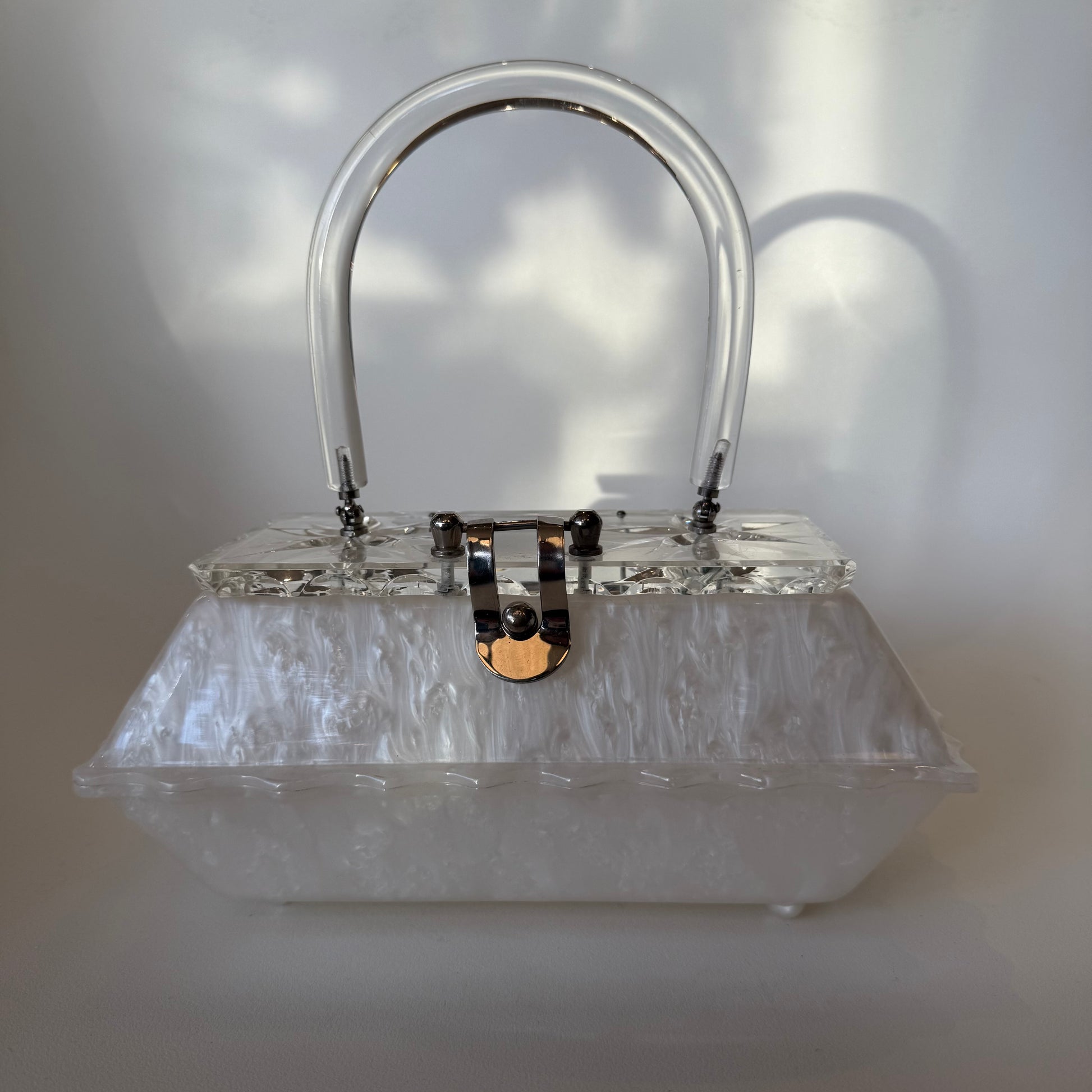 Vintage Llewellyn White Pearl & Clear Lucite Purse (1123a)