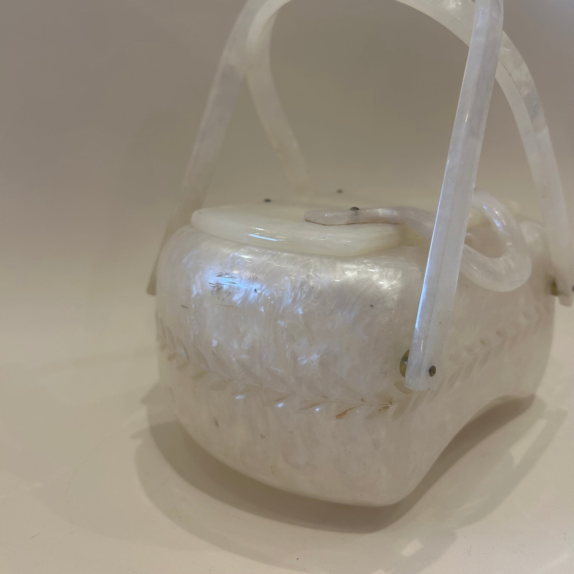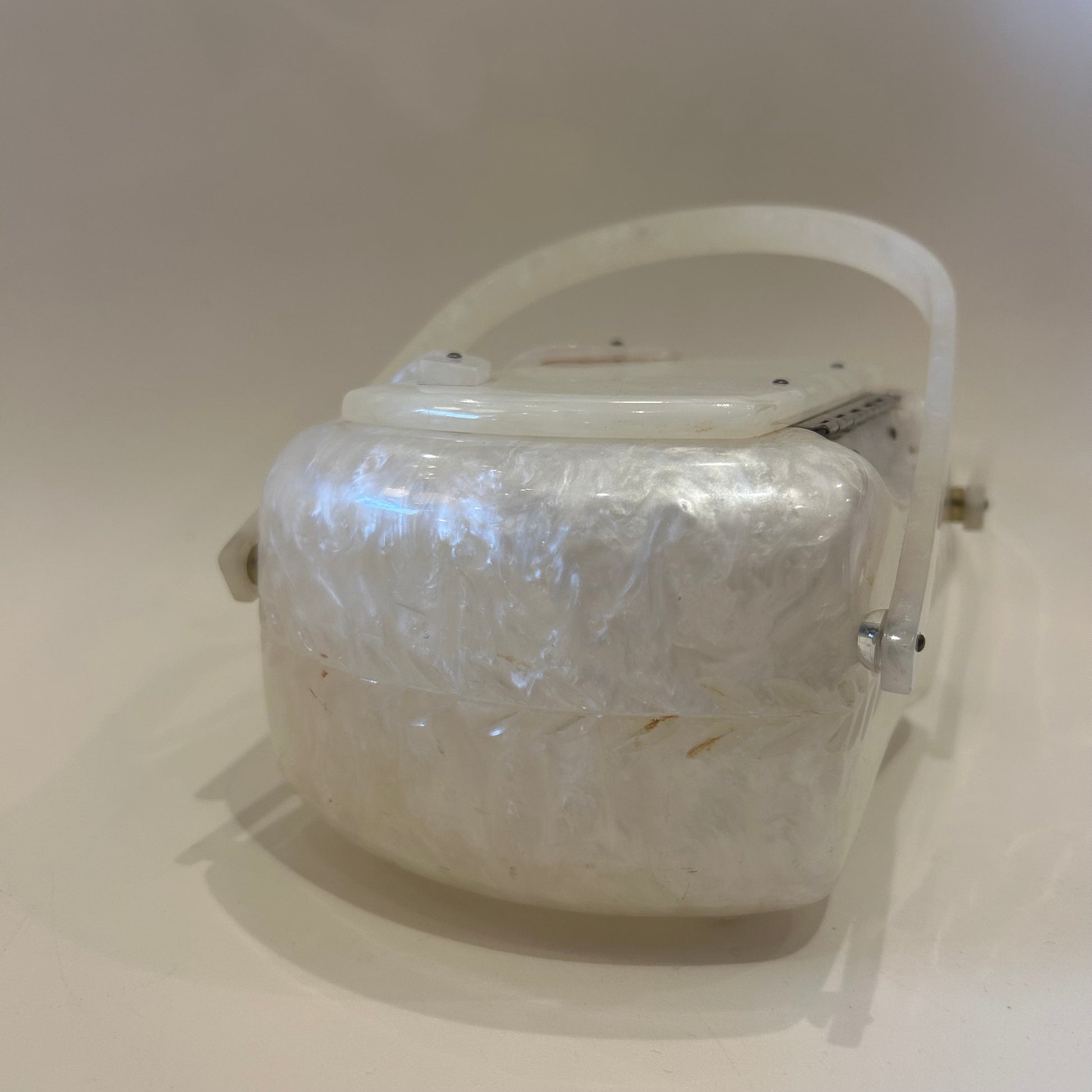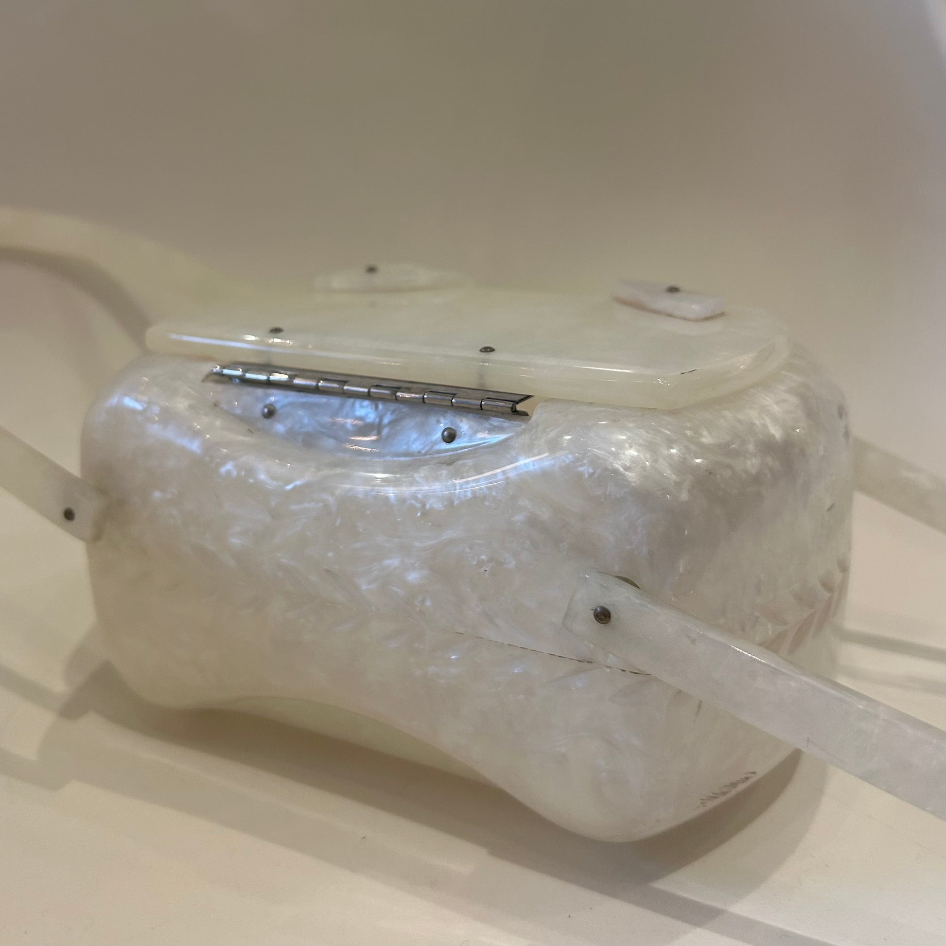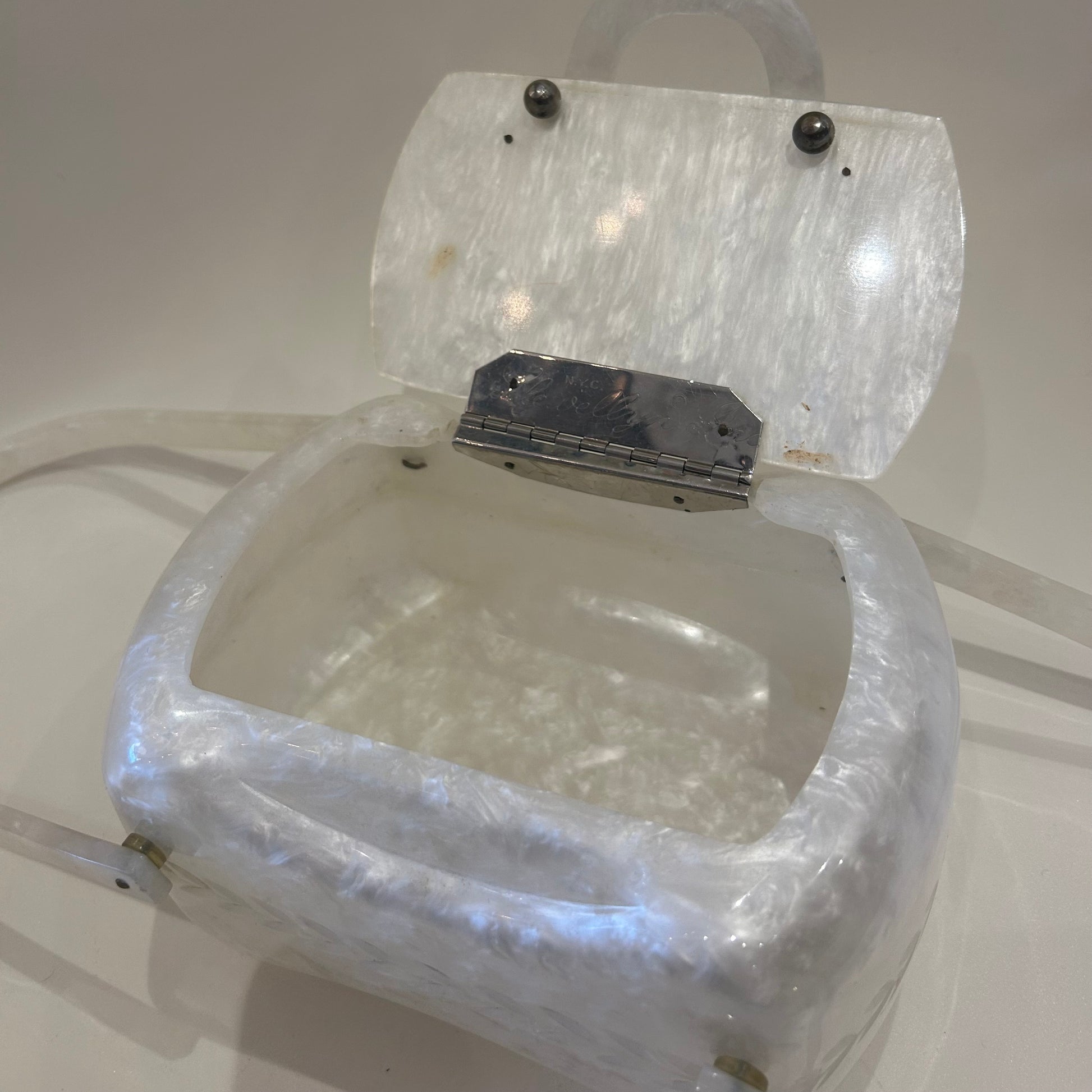 Vintage Llewellyn White Pearl Lucite Purse (1119b)