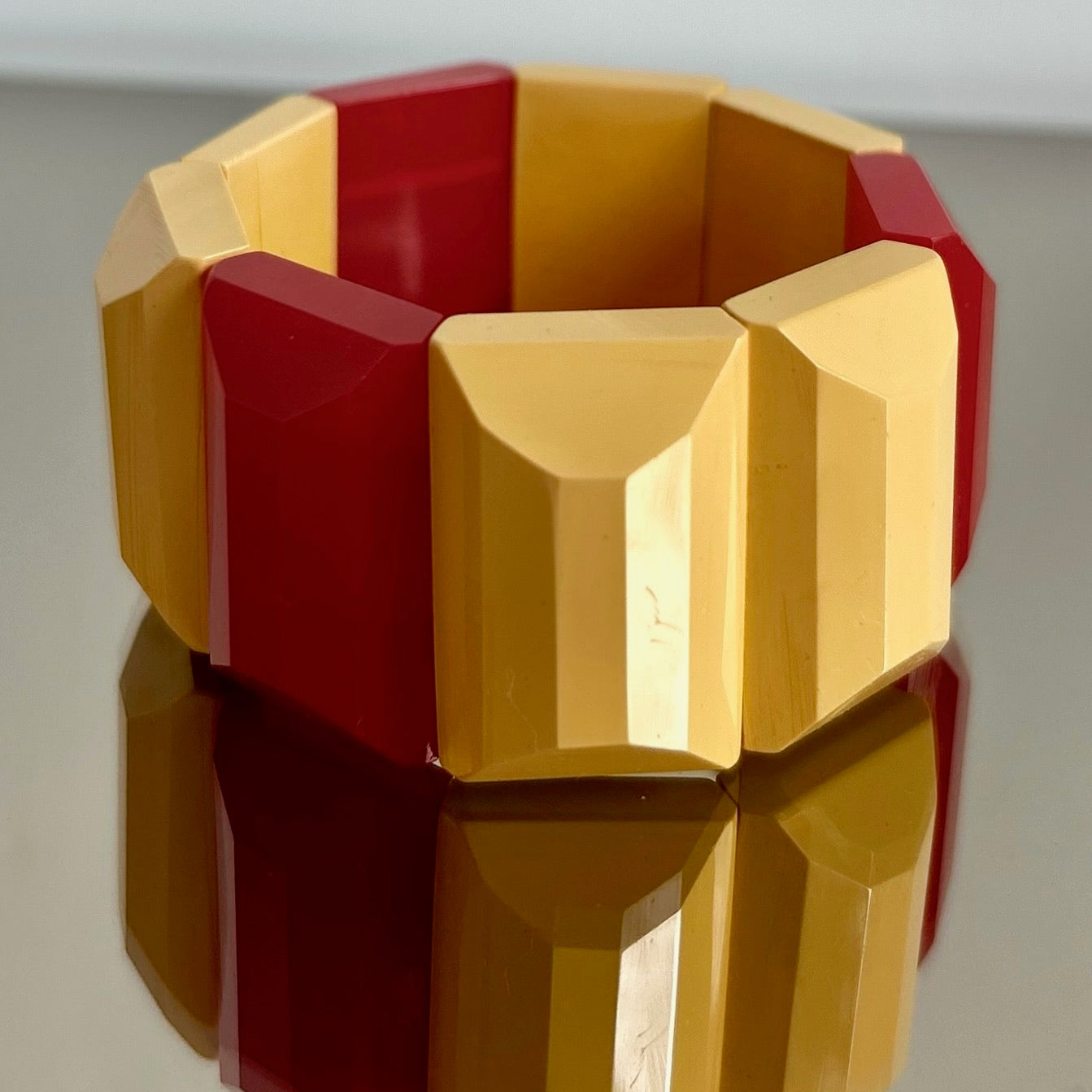 Vintage Pale Yellow and Bright Red Bakelite Stretch Bracelet