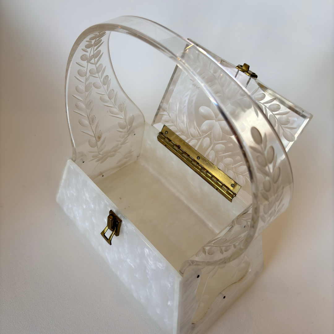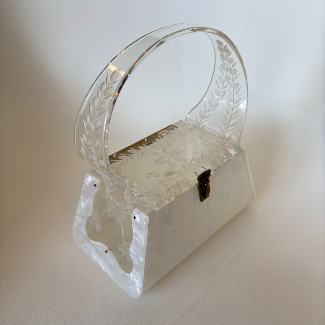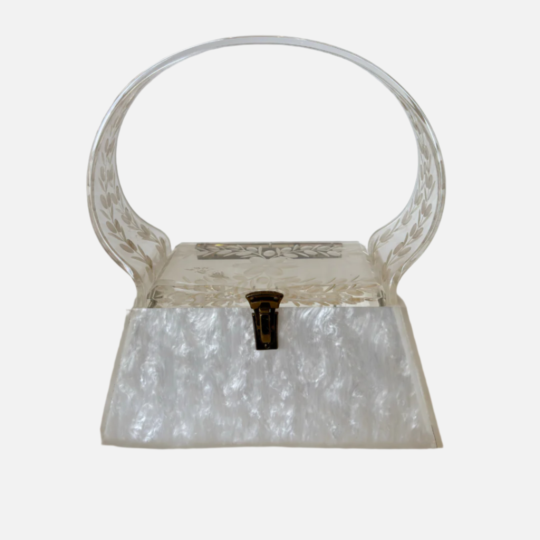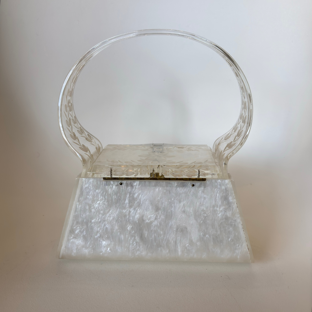 Vintage White Lucite Purse (1123b)