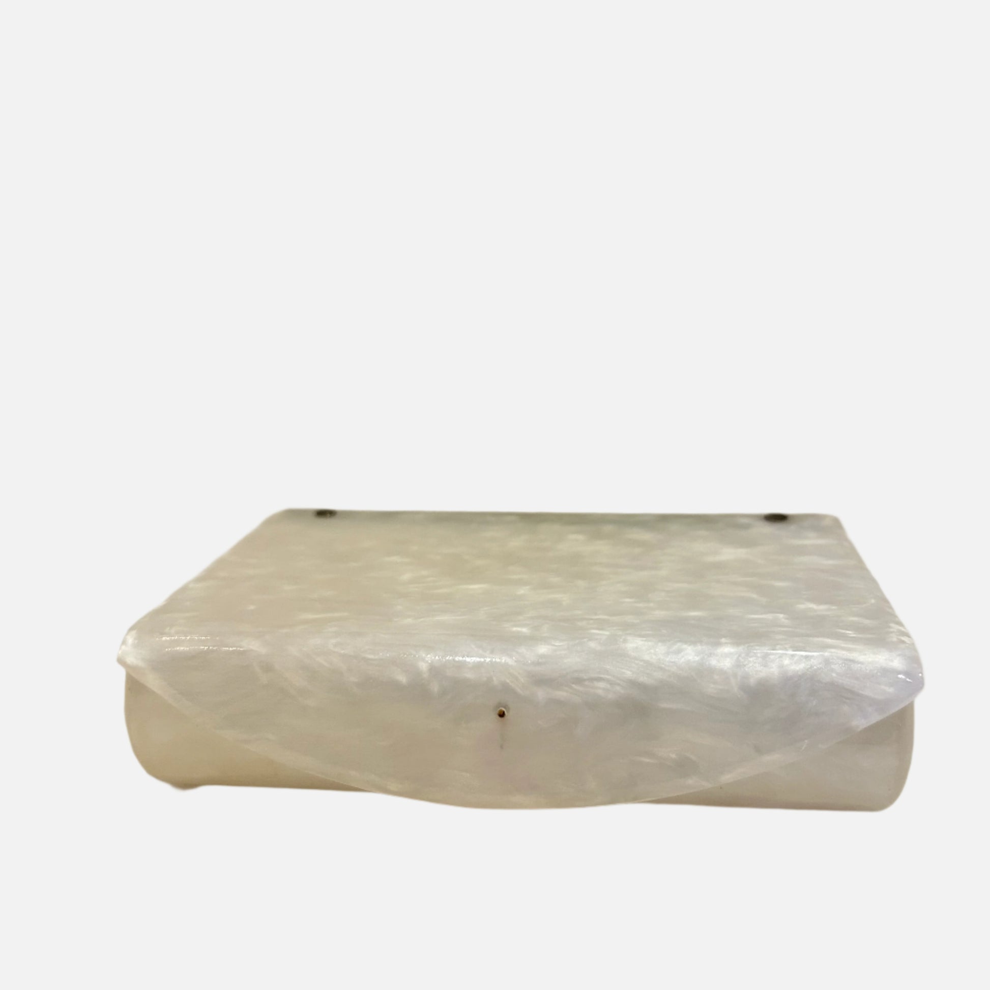 Lovely white pearlescent marble Lucite clutch. Perfect for the minimalist!