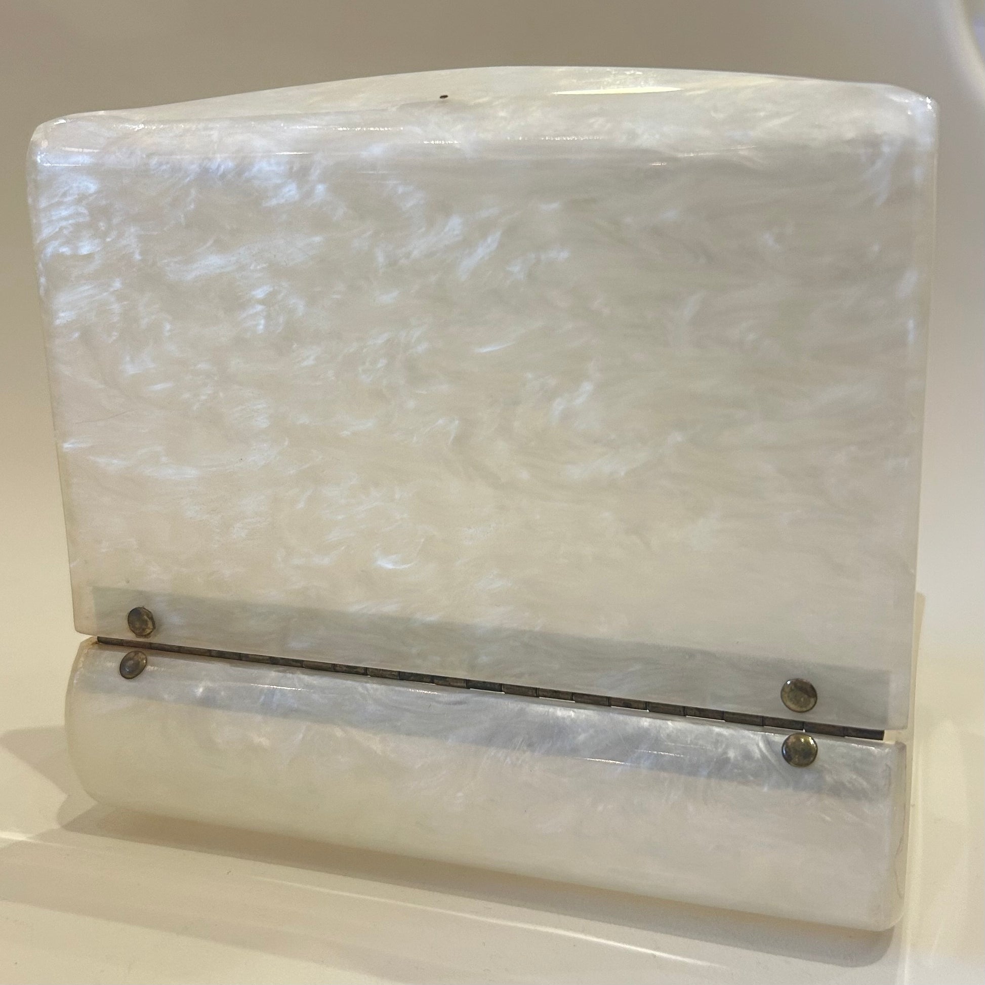 Vintage White Pearlescent Lucite Clutch (1124f)