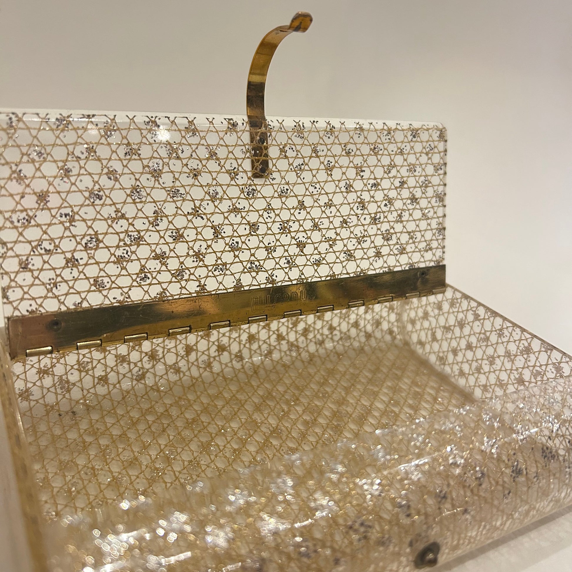 This Willardy Originals 1950's Stardust pattern Lucite clutch is an icon. Midcentury glam at its apex. A spectacular piece of fashion history.